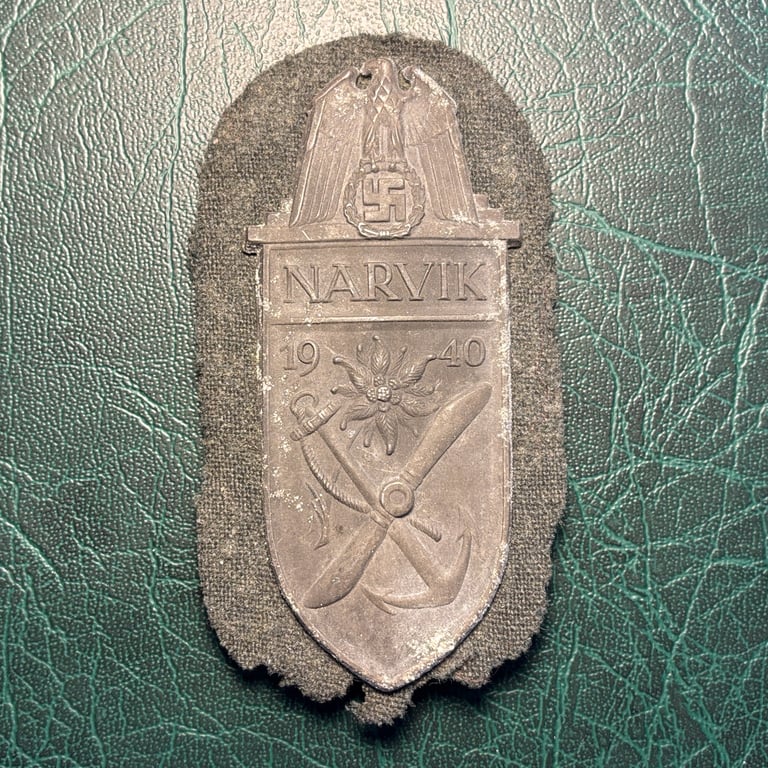 The Narvik Shield was awarded to members of the Heer (Army), Kriegsmarine (Navy), and Luftwaffe (Air Force) who participated in the Battle of Narvik — a strategic and hard-fought engagement in the Norwegian Campaign.